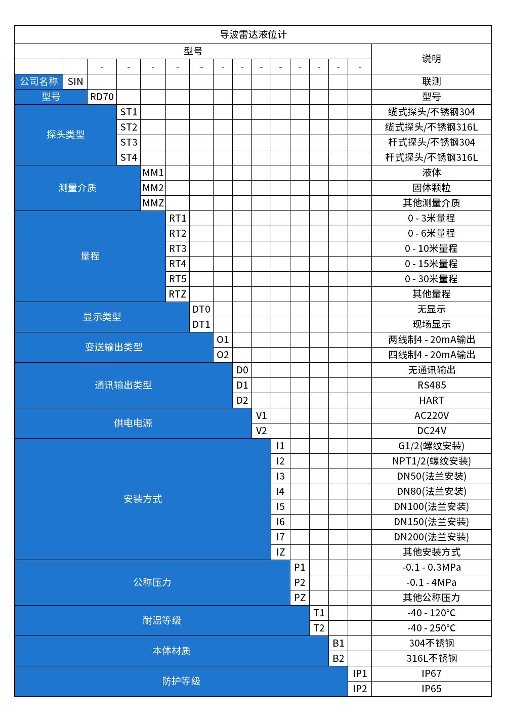 聯測SIN-RD703雷達料位計,適用于水泥倉粉料。雷達液位計天線發射及窄的微波脈沖,這個脈沖以光速在空間傳播,遇到被測介質表面,其部分能量被反射回來,被同一天線接收。發射脈沖與接收脈沖的時間間隔與天線到被測介質表面的距離成正比,多用于水位、料位與化工場合。