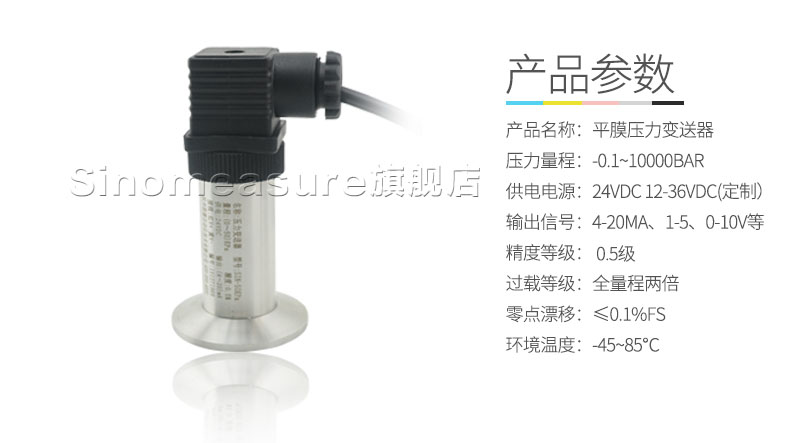 SIN-P350衛(wèi)生平膜型壓力變送器,衛(wèi)生平膜型液位變送器是測(cè)量端采用特殊堅(jiān)固處理的齊平隔離膜片。結(jié)構(gòu)緊湊、耐腐蝕,抗震動(dòng)、抗微粒沖擊、寬范圍溫度補(bǔ)償。膜片采用316L不銹鋼材料,特別適用于醫(yī)療、食品行業(yè)有衛(wèi)生要求的,粘稠流體壓力和液位測(cè)量,解決了結(jié)垢,堵塞,清潔衛(wèi)生等問題。高精度的信號(hào)處理電路位于將傳感器輸出信號(hào)轉(zhuǎn)換為標(biāo)準(zhǔn)輸出信號(hào),可直接與計(jì)算機(jī)、控制儀表、顯示儀表相連。
