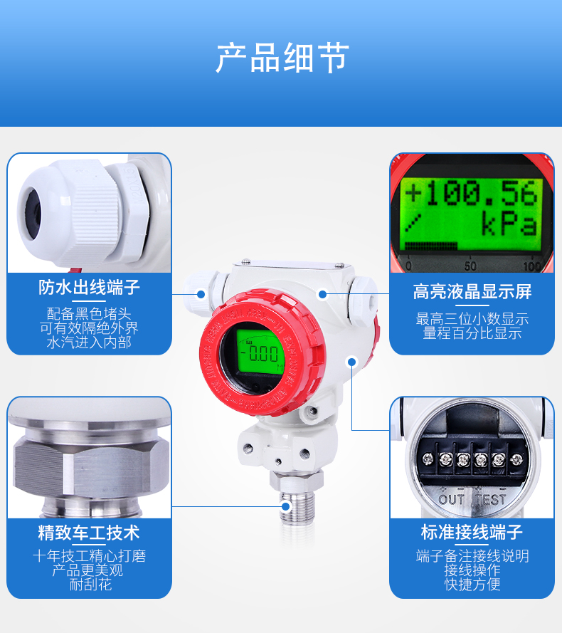 聯測_SIN-P400_2088型壓力變送器_精度0.5%榔頭型_可帶顯示 P400全數字電路保證精度,保證長期零點和線性穩定,現場液晶顯示,多種量程選擇,防雷擊,防射頻干擾,液晶顯示可通過按鍵調整零點和量程,方便用戶調試。
