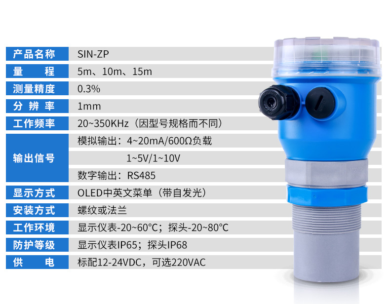 聯(lián)測SIN-ZP超聲波液位計(jì),適用場合:污水處理 窨井 工廠水箱 罐體 市政工程 自來水 水利水電 鋼鐵 煤礦 電力 石油化工 城市內(nèi)河湖泊、交通以及食品加工等高精度要求行業(yè)。